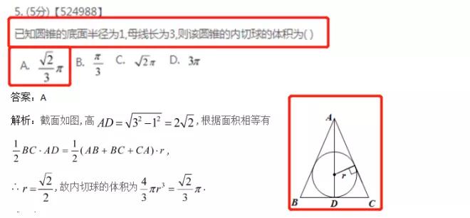 2.真题设问圆锥内半径最大的球即为圆锥内切球,知心慧学题是直接设问圆锥的内切球,两者完全一样;