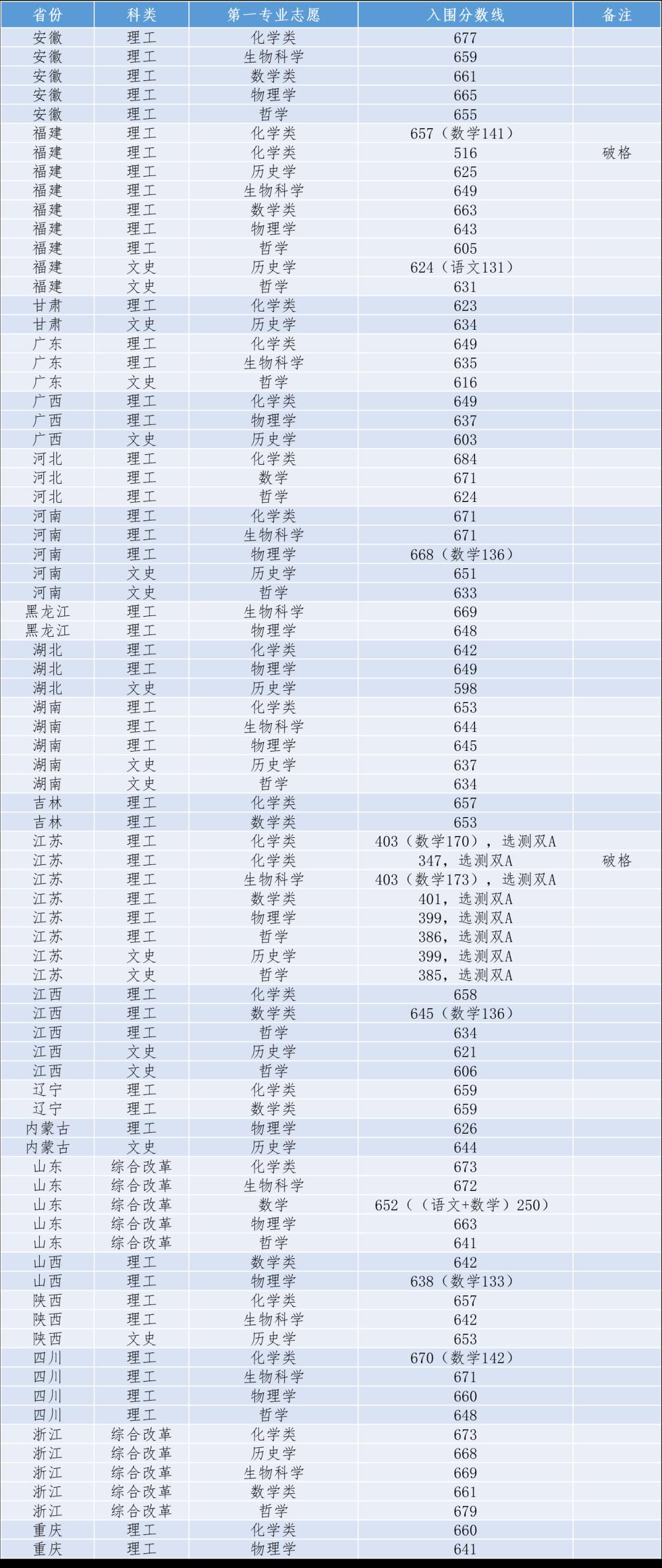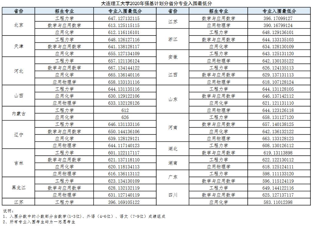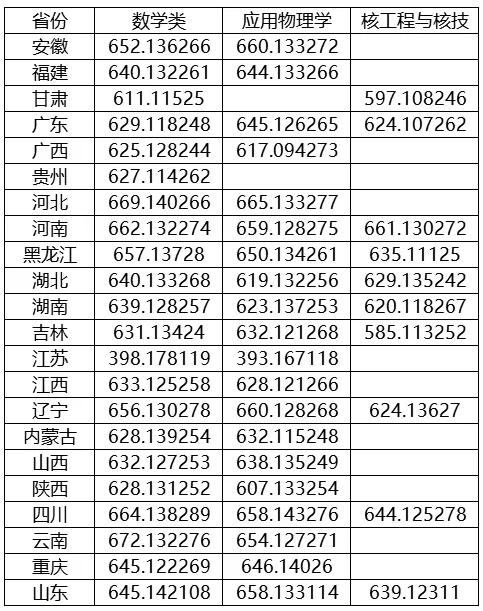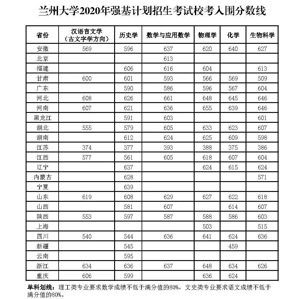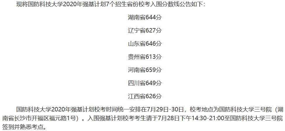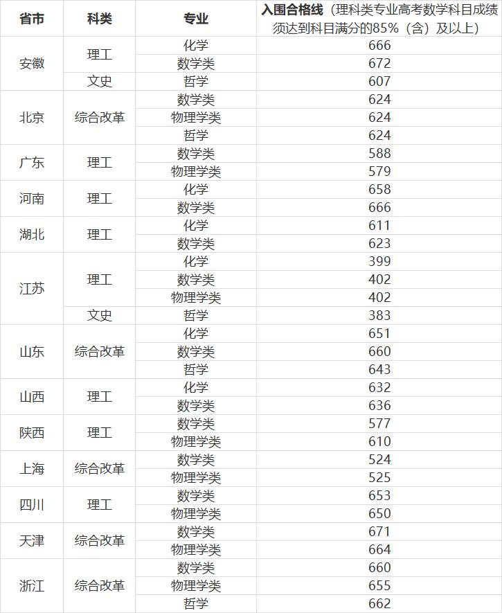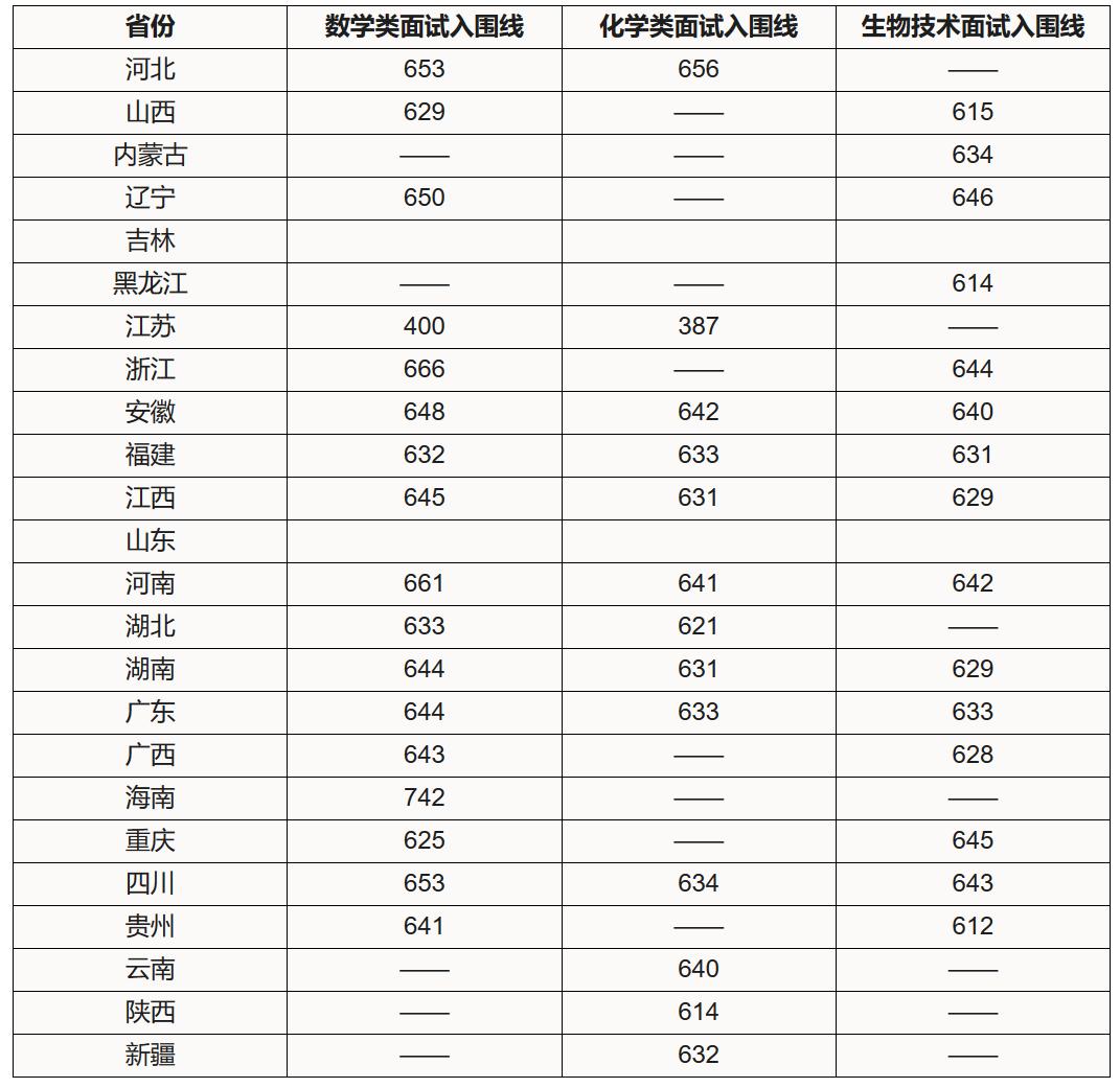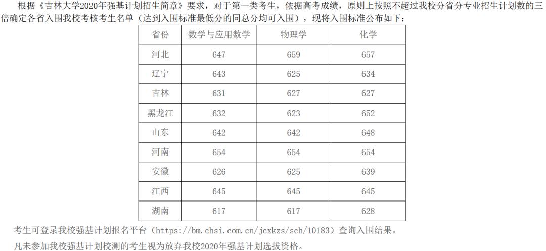 根据教育部相关文件和我校2020年强基计划招生简章要求,根据各省教育考试院高考成绩公布结果,确定强基计划面试考核入围分数线,现公布如下: