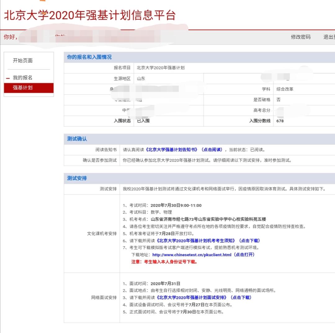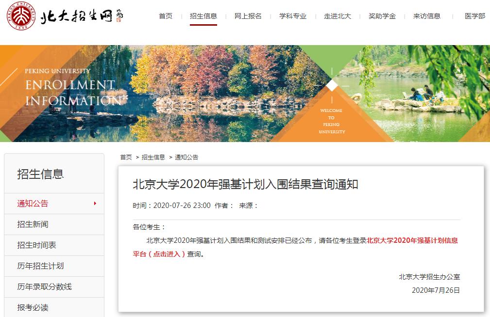 北京大学2020年强基计划入围结果和测试安排已经公布,北京大学2020年强基计划信息平台查询。