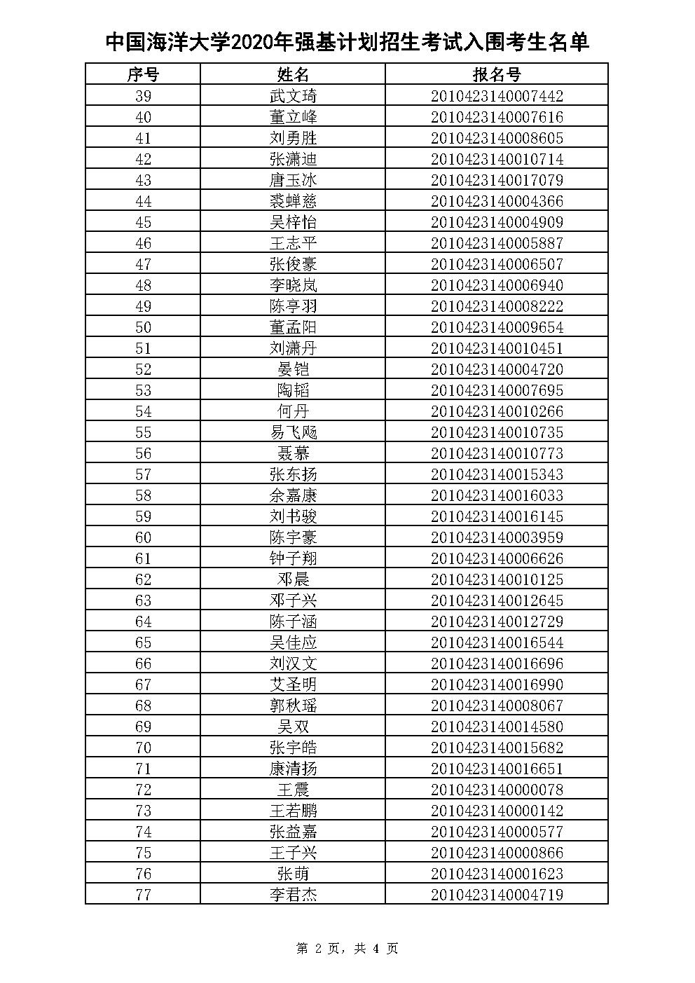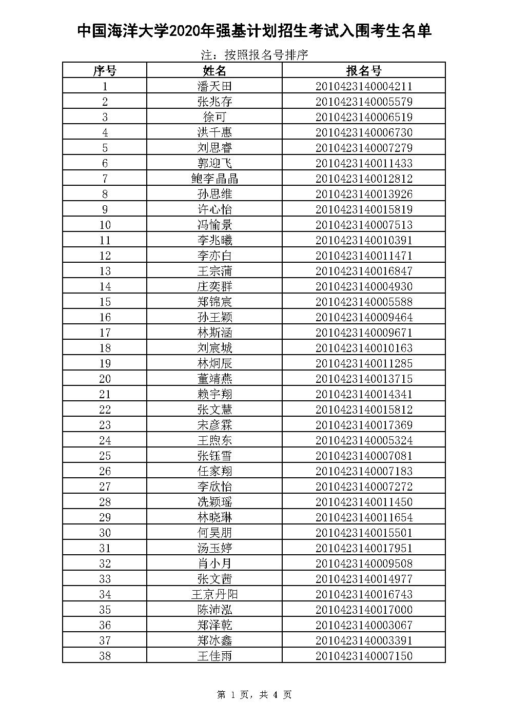 我校拟于2020年8月1日在中国海洋大学崂山校区开展强基计划招生现场考核,考核方式为面试,因疫情防控需要,本次考核取消体育测试环节。为保障考生志愿填报、录取相关权益,请确认放弃我校入围资格的考生务必按照附件二要求将《考生自愿放弃入围资格承诺书》,于7月28日12点前报送至中国海洋大学本科生招生办公室。如拟放弃入围资格的考生未按要求将承诺书及时报送,可能影响后续志愿录取,由此产生的后果完全由考生本人承担。