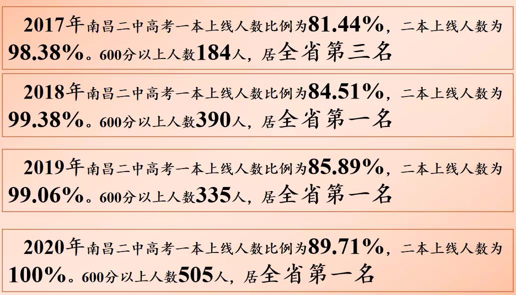 “南昌二中今年600分上线人数500多人,又是全省第一!”