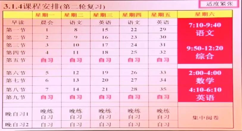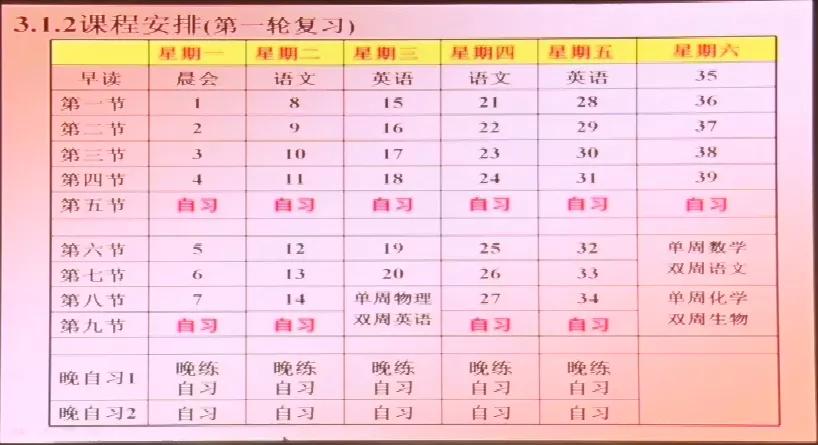 在课程安排上,尤其突出自习课的地位:自习课在中点高中可以大面积增加一本录取人数。