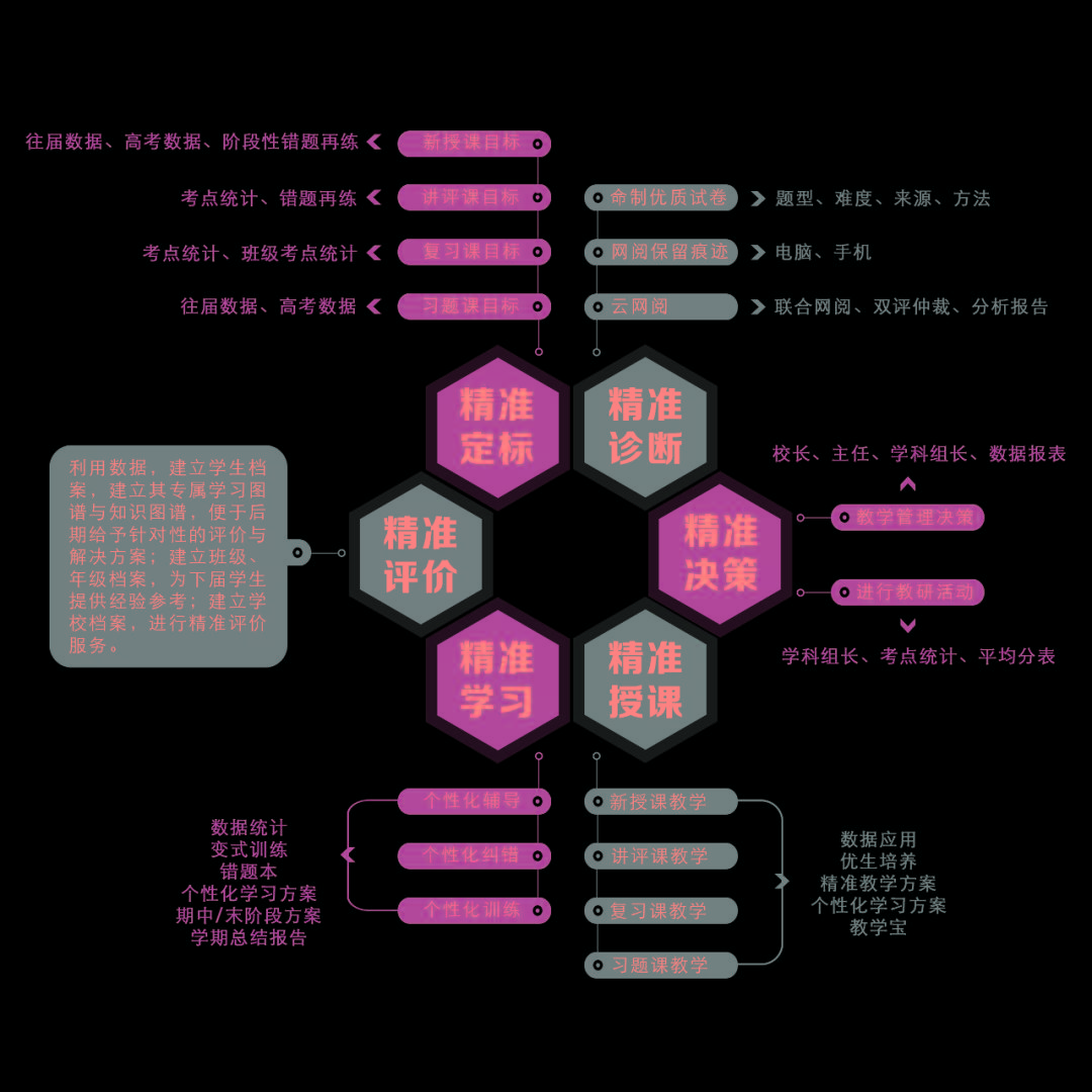 技术是基础,学校教学可选择与例如风向标教育此类的互联网技术企业合作,寻求从备课到阅卷教学一体化的数据技术、人工智能技术支撑,去寻找隐藏学生学习数据中存在的潜在关系和规律。