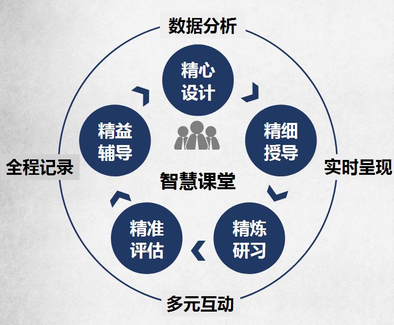 杨教授在会议上提出了精准教学5J模式,即以准确分析学情和把握重难点教案的精心设计,抓重点破难点的精细授导,针对性练习的精炼研习,实时采集分析数据、给予评价反馈的精准评估,开展1对1和分组辅导的精益辅导五步教学链条循环运行,打造精准数据分析、数据实时可视化呈现、现况全程记录及师生多元互动的智慧高效课堂。