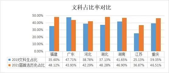 说明:表中2019文科占比数据是基于2019年各省发布的一分一段表文理人数计算而来,艺术类考生暂未计入。