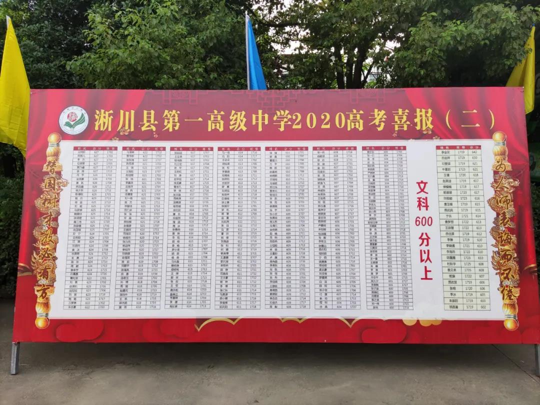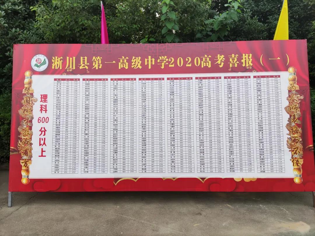 2020年高考成绩揭晓,淅川一高取得新突破。全校理科700分以上共2人,690分以上共8人。670分以上共46人。总分600分以上共640人,远超全省各县区平均水平。理科600分以上人数占全校一本进线人数的近50%,全校文理600分以上666人。