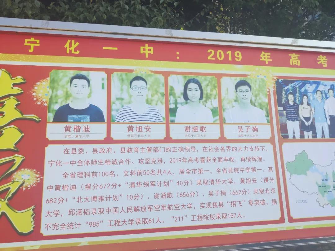 宁化一中:以裸分672分总分712分录取清华大学,目前就读于电机工程与应用电子技术系。