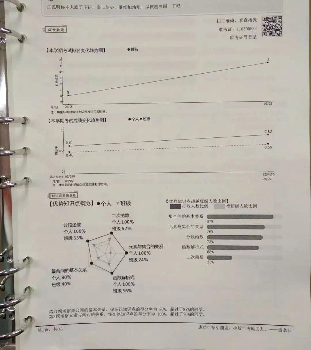 黄楷迪说:“大家一定要高度重视错题,老师上课讲的不会的题,考试错题,平时练习中的错题都要摘抄下来。在订正错题时,先看答案,看懂之后盖上答案重新做一遍,循环动作直到完全消化为止。同时要好好利用提供的数据,了解整体学习情况,把提分训练好好完成,你一定能取得很好的效果!”