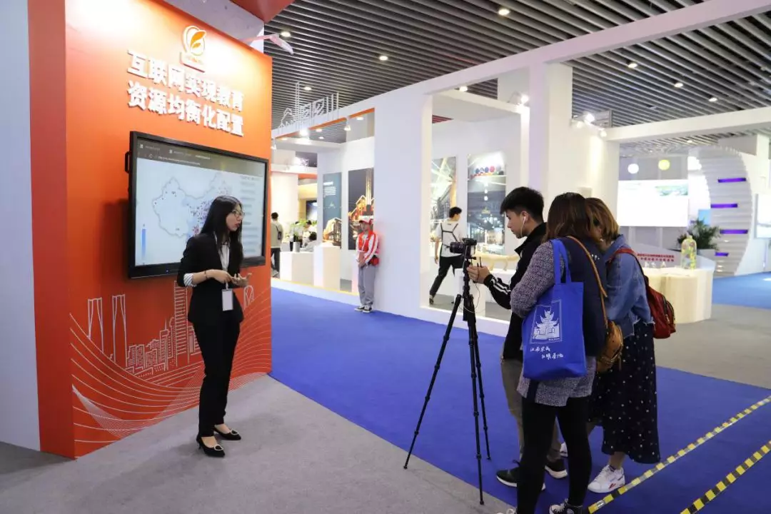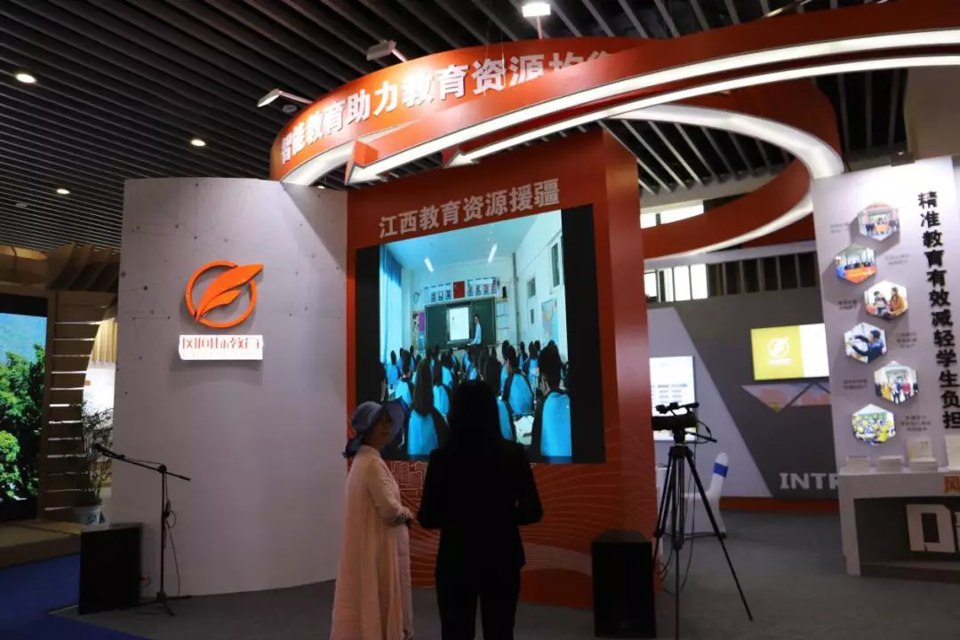 三楼北厅的东北角,一块屏幕,一支话筒吸引了参观者的眼光。屏幕中是一间安静的教室,教室里整整齐齐地坐着认真听课的新疆孩子们。这正是江西集中优质教育资源在克州特设的精英班级——“江西班”。目前,这群新疆的学子们正通过江西智能化教育产品——“知心慧学智能精准教学系统”向全国优秀的老师学习文化知识,享受智能教育技术给他们带来的优质教育服务。