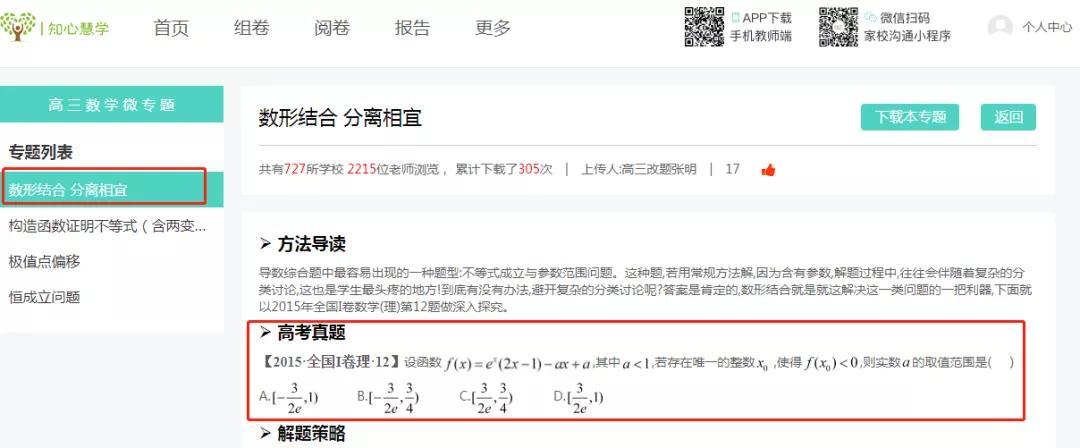 都说思想方法是数学解题的灵魂,面对师生教学需求,知心慧学特别推出微专题,精选近五年高考真题(尤其是压轴试题),提取其核心解题方法,并加以分析提炼,配备变式训练,让学生达到巩固的目的,从而加强二轮复习。