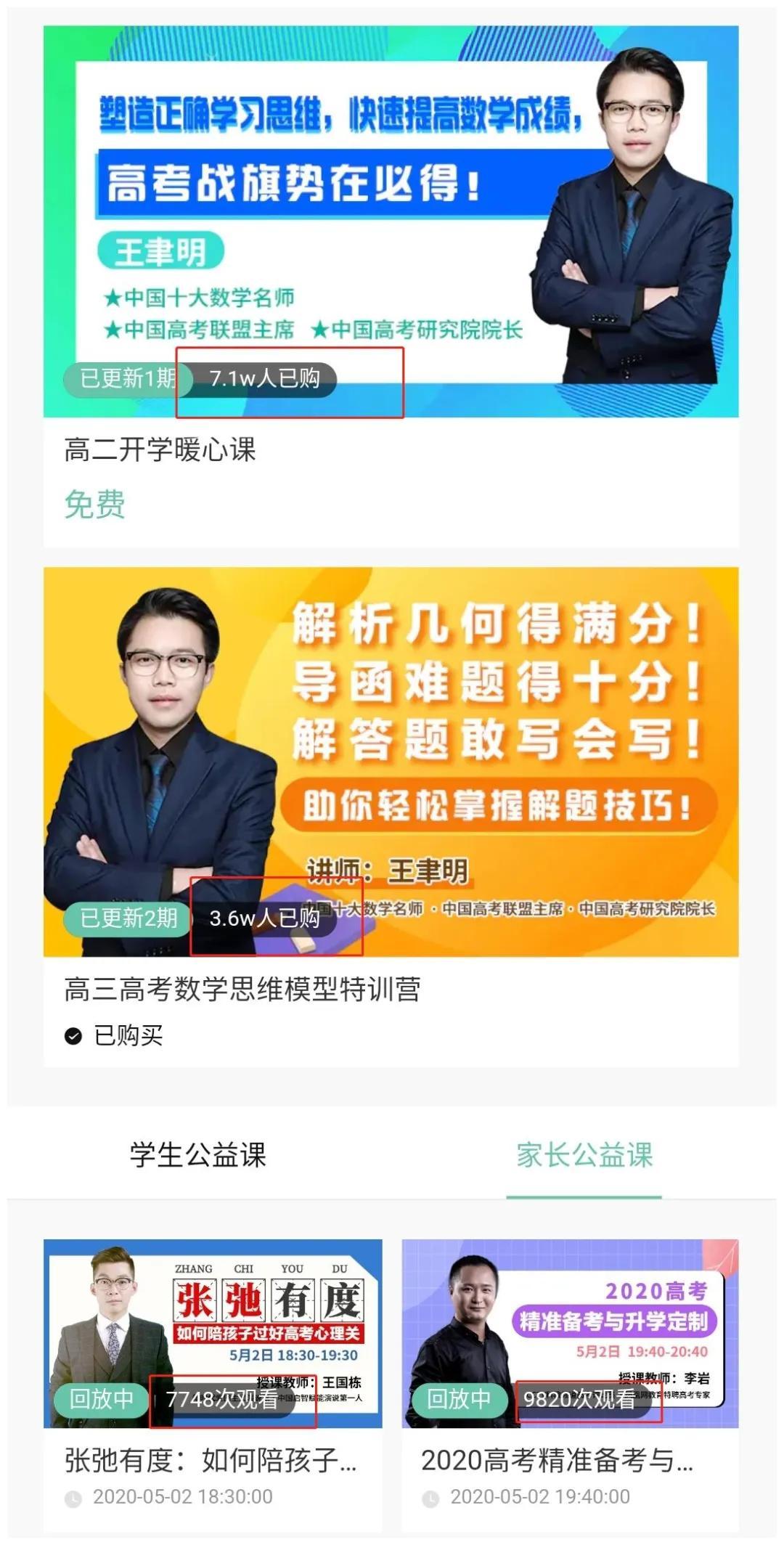 4月30日至5月1日的公益课开播后,我们取得了12.4万人收听的好成绩,很多学生和家长纷纷表示感谢及对下一次直播课的期待,反响热烈。