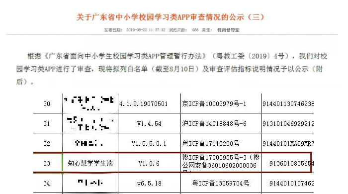 风向标教育积极配合广东省教育厅开展自查自纠工作,经教育厅严格审查,各项指标均已符合《广东省面向中小学生校园学习类APP管理暂行办法》规定,并已于今年六月已通过审查并列入白名单。2019-09-10
