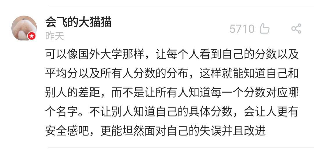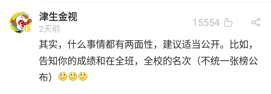 因此,成绩排名很重要,但“公开”的方式可以有所不同。正如网友所说,可以通过其他的方式单独发给学生和家长一样,如同中高考一样,让学生只能看到自己的考试成绩和排名,看不到其他学生的考试成绩和排名,这样既能保护学生隐私,又能让学生和家长及时了解学习效果,调整学习状态;同时,教师积极引导学生和家长,正确看待每次成绩,查漏补缺。