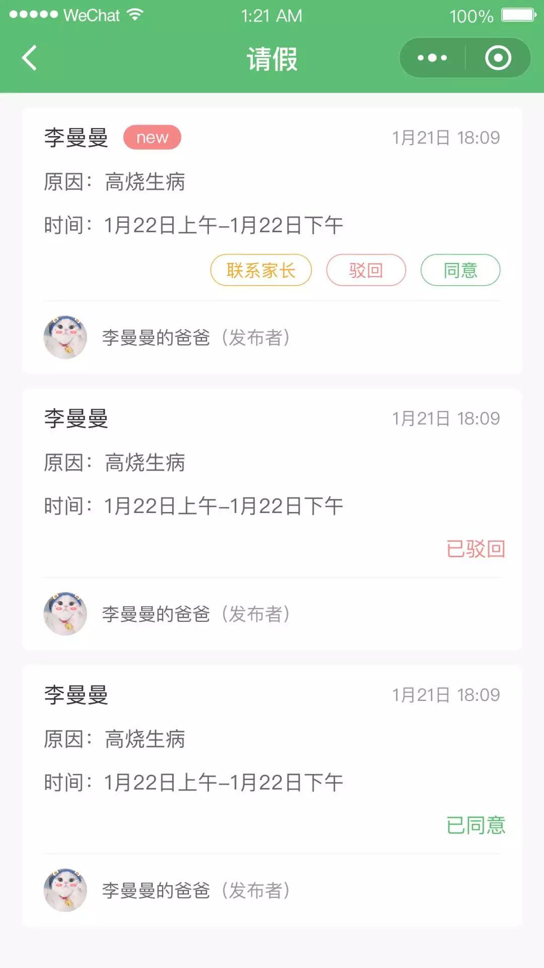 向繁琐的电话请假说再见,知了家校的存在让请假有了更加规范的流程。家长在请假页面中输入请假原因及请假时间,老师即可在上课前一键批阅,不再浪费私人空间。