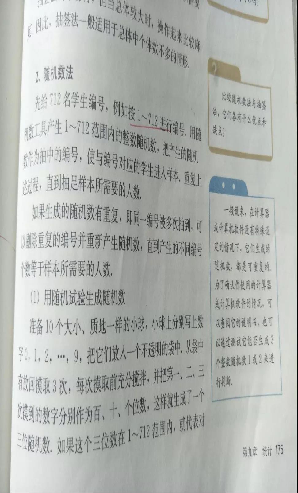 课本175页,第九章统计 9.1.1简单随机抽样中的随机书法