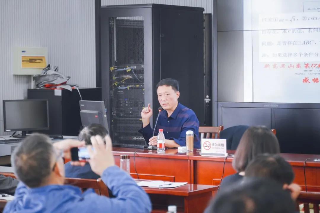 淄博实验中学级部主任李可峰、潍坊教科院教科所所长马凤喜、山东省潍坊市教育科学研究院英语教研员任伟分别通过对山东新高考解析与核心素养解读,就数学、物理和英语的新教材教学进行分享和交流。